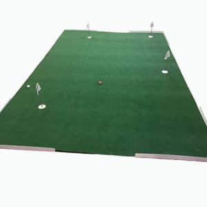 Just bought a 6×12 a few weeks back and it is perfect. Can put 15 balls at a time before I have to go pick any up. Each cup can hold 5 balls. I have a high carpet and the green still rolls true, it only sinks a little when you step on it, but that’s of no concern. When I put it on cement it was perfect. Great buy with great service!